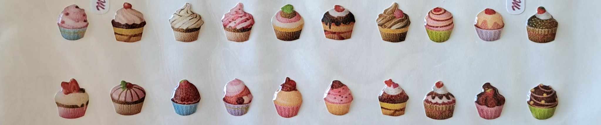São adesivos com uma camada de resina (alto relevo que imita vidro). A cartela vem com 20 unidades.